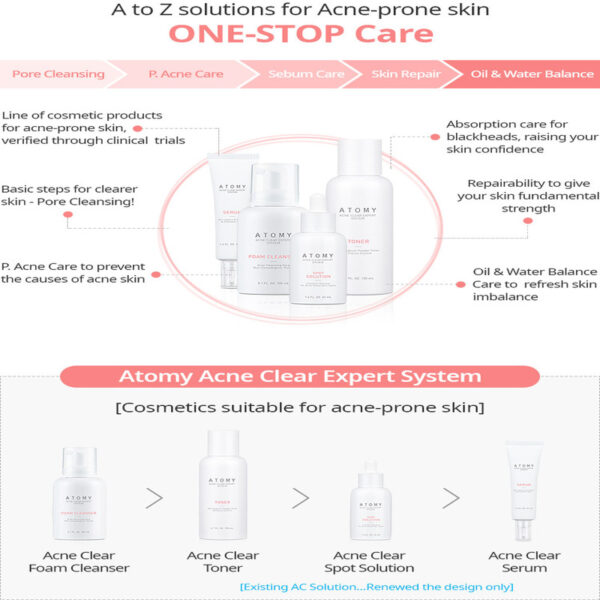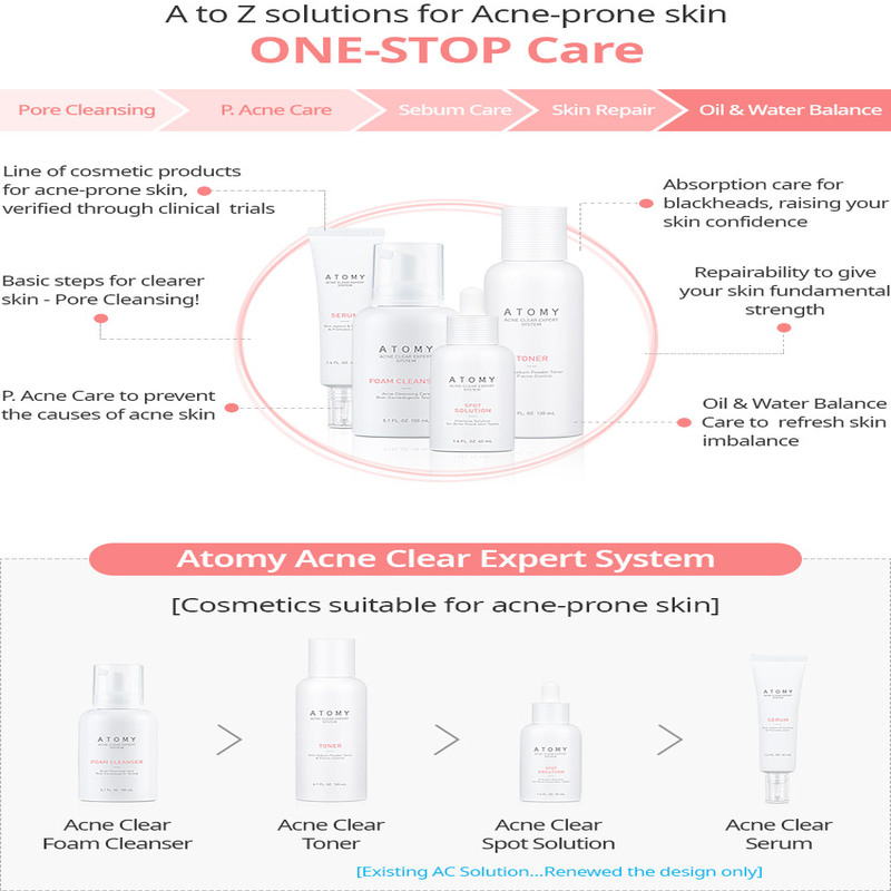 Atomy Acne Clear Expert System 4 in 1 Set FoamĀ cleanerĀ 5.1Ā FL.Ā O.Z.Ā 150mL TonerĀ 4.1Ā FL.Ā OZ.Ā 120mL SpotĀ SolutionĀ 1.4Ā FL.Ā O.Z.Ā 40mL SerumĀ 1.4Ā FL.Ā OZ.Ā 40mL