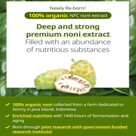 *Using 100% high-quality organic noni fruit from Atomy’s dedicated farm in Java, Indonesia