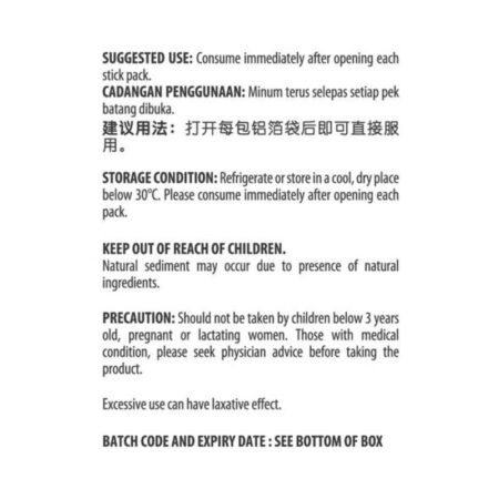 Those with medical condition, please seek physician’s advice before taking the product. Excessive use can have a laxative effect.
