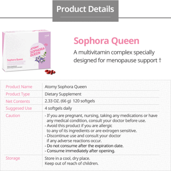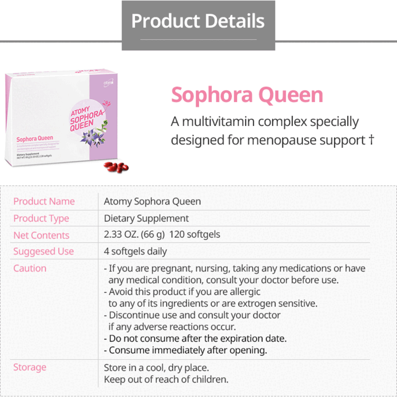 Atomy Sophora Queen not only prevent the formation of menopause, can also improve the symptoms of menopause, the body comfortable,